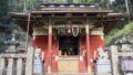 「長篠設楽原パーキングエリア下り」で記念撮影。金屏風をバックに赤い甲冑と。
